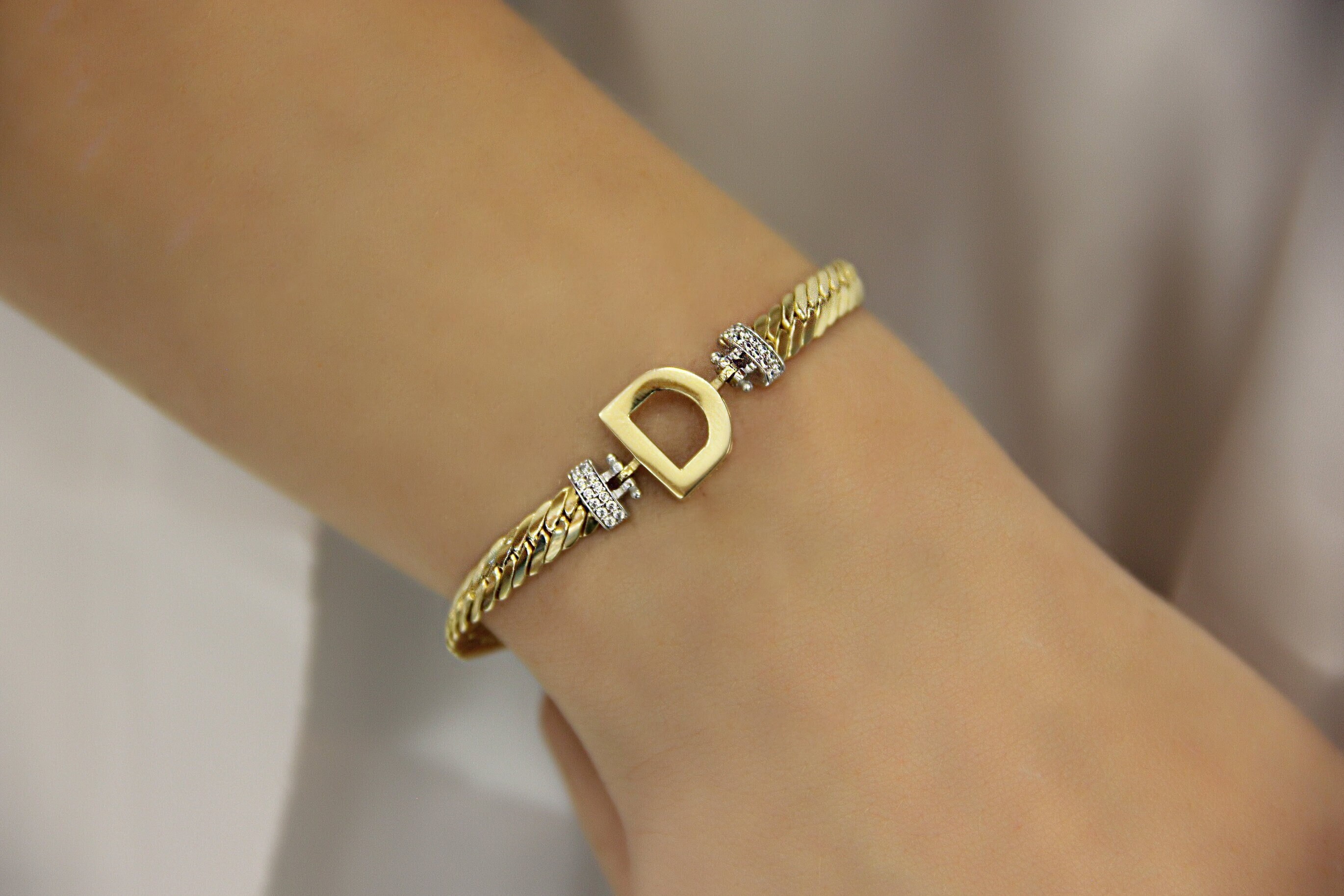 14k Solid Gold Custom Letter Bracelet Diamond Pave Initial Etsy