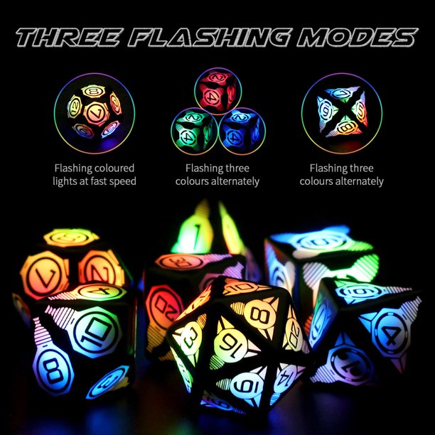 Pointerteck Led Dice Set Of 7 Dnd Dice Rechargeable With Charging Box Shake To Light Up Colorful Dice Dungeon And Dragons Dice Usb Port Charging Role Playing Dice For D D Table Games